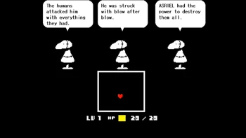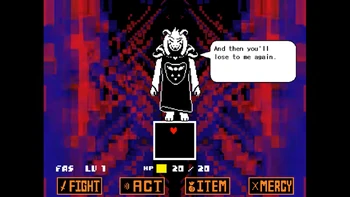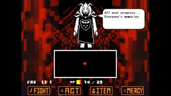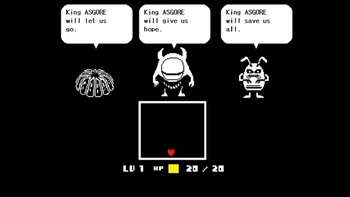 Asgore, who fought humans lots of times, says that the fight between Frisk and Flowey will decide the fate of also the whole humanity.