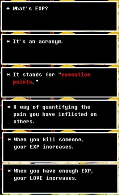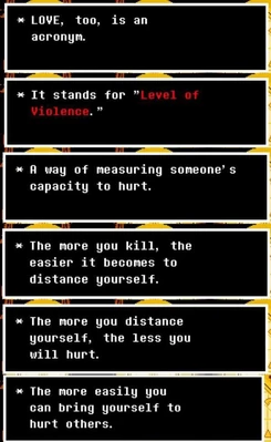 Why are them relevant? Simple, unlike most of videogames where STATS are counted as simple Game Mechanics and thus, ignored, since lore and cutscenes matter the most, in UNDERTALE they're canon, and there's an explanation of them. Other than the classic "HP, ATK and DEF", there are also the LV (LOVE) and EXP.