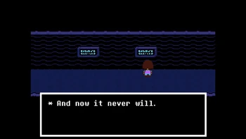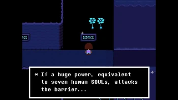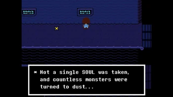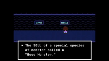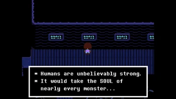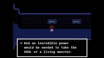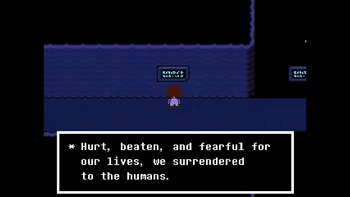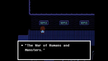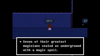 Why is it so much important in the verse? The intro already says that many, many years ago, two races ruled over Earth, Humans and Monsters. One day, war broke between the two races, and monster, after being defeated, were forced to go under a mountain and to be sealed there. But why? Let's see what actually happened thanks to the inscriptions in Waterfall.