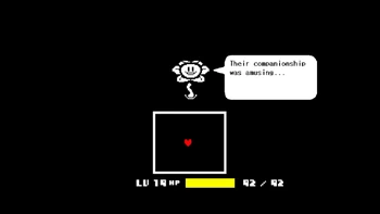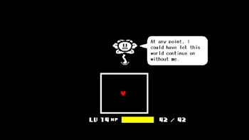- But not only Flowey got this level, Frisk as well, despite not getting these offensive abilities, since with their increased DT they still could damage Flowey, (even if barely, and Flowey implied that he was casual all the time since he can one-shot Frisk even while weakened from the SOULs rebelling against him), meaning that they resisted all that rewrite, so both they and Flowey got Resistance to Reality Warping, Data and Information Manipulation.
