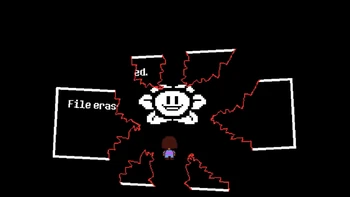 - Completely distorted the intro and overwrote the window text first in "FLOWEYTALE", then glithcing it completely.