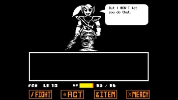 Undyne, a Royal Guard who was trained to fight against humans, says that Frisk can destroy the whole humanity.